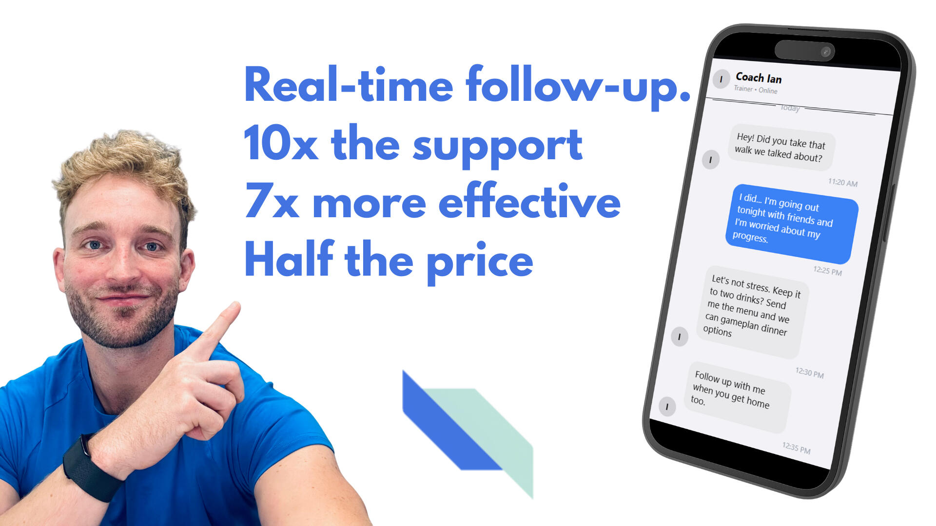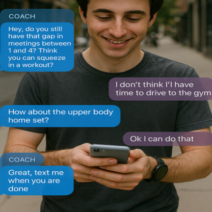 Most trainers hand you a plan and disappear. I stay with you in real time so you never fall off again.